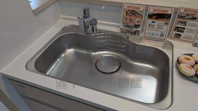 大きなお鍋も楽々洗える幅の広いシンクです^^ステンレスシンクなので簡単にお掃除できますよ。洗剤やスポンジもすっきりできる収納付き。