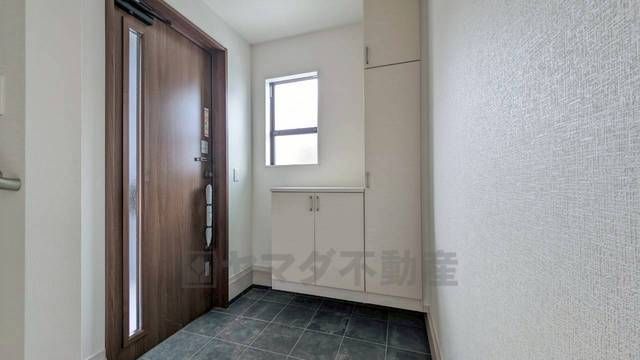 玄関扉から光の差し込む明るい玄関です。 たっぷり収納できるシューズボックス付きなので、家族全員の靴がきれいに整頓できます。