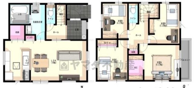 ウォシュレット付きトイレです。1階2階の2ヶ所にトイレがあるので、忙しい朝にもゆとりができますね^^