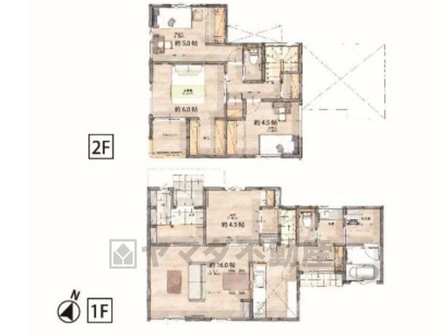 LDK16畳(1F)、洋4.5畳(1F)、洋4.5畳(2F)、洋5畳(2F)、洋6畳(2F) |