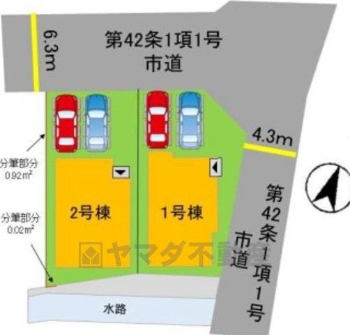 公道 東 幅員4.3m 公道 北 幅員6.3m |