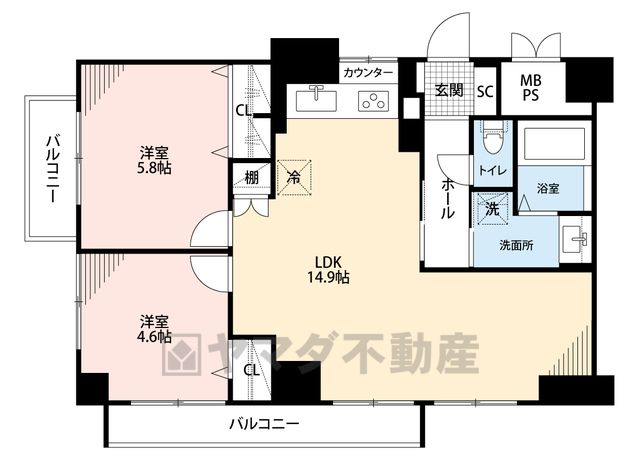 LDK14.9畳、洋4.6畳、洋5.8畳 |