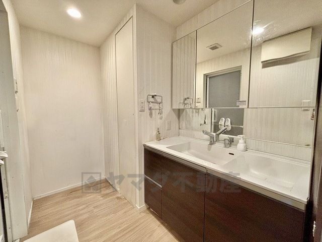 洗面台、洗濯機置き場、バスルームが連なっている、生活導線の考えられた作りになっています。
