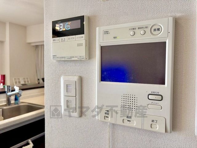 今や必需品となっておりますTVモニター付きインターホンです。録画・再生器のもついており防犯性もばっちりです。キッチン横にありワンタッチで外の方とお話ができますので便利です。