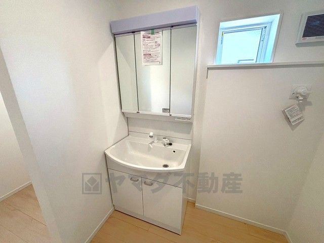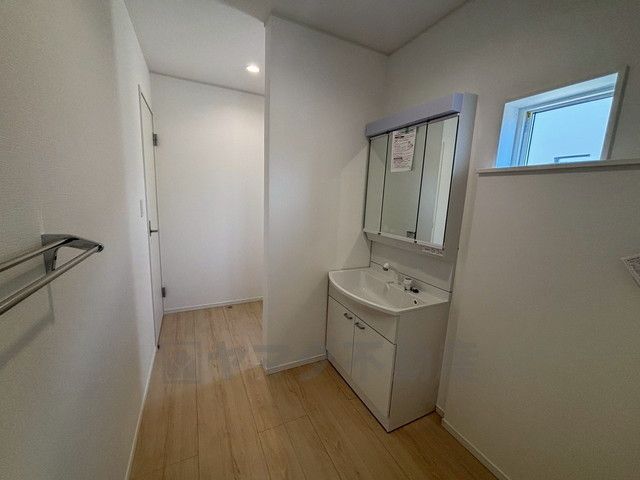 洗面台、洗濯機置き場、バスルームが連なっている、生活導線の考えられた作りになっています。
