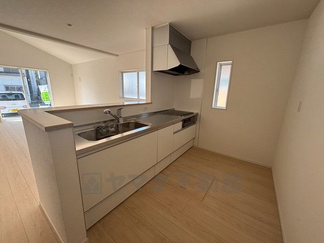 リビングダイニングを見渡せるキッチンです。家族とコミュニケーションをとりながら、楽しくお料理や片付けができそうです。