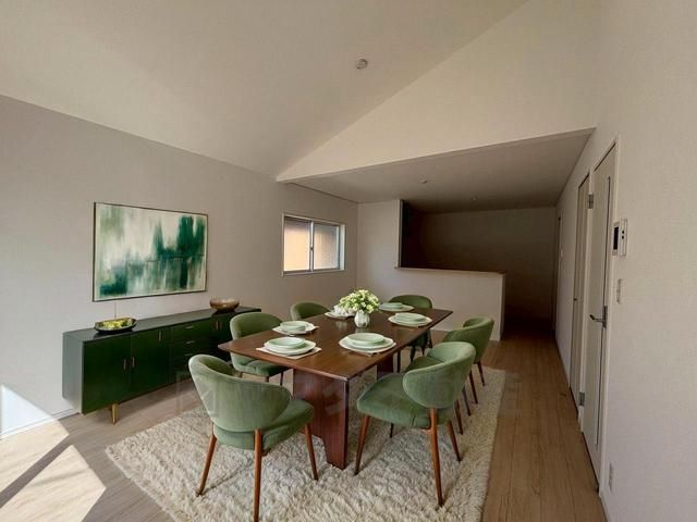 ▲2号棟。 完成しました。内覧池付け中です。 西区今津に限定2棟。広めのリビングは各居室からにすぐ行き来できる設計になっているので家族が自然と集まるあたたかい空間になりそうです。