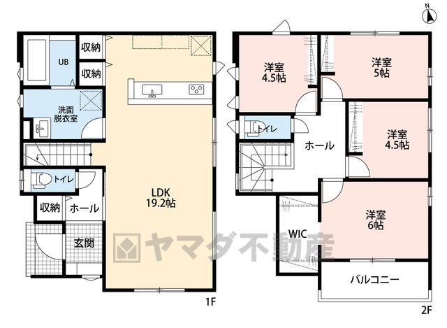 LDK19.2畳(1F)、洋4.5畳(2F)、洋5畳(2F)、洋6畳(2F) |