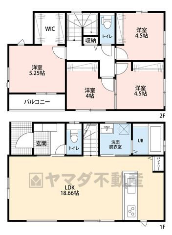 LDK18.6畳(1F)、洋5.2畳(2F)、洋4.5畳(2F) |