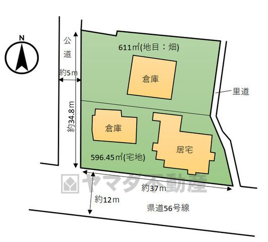 | 物件用途 | - | 接道 | 公道 南 幅員12m (接面37m) 公道 西 幅員5m (接面34.8m) |