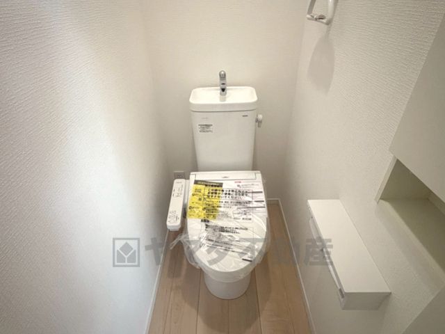 ウォシュレット付きトイレです。1階2階の2ヶ所にトイレがあるので、忙しい朝にもゆとりができますね^^ 温水洗浄便座リモコン付き。