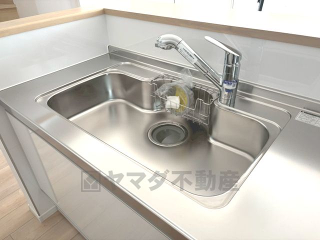 大きなお鍋も楽々洗える幅の広いシンクです^^ステンレスシンクなので簡単にお掃除できますよ。洗剤やスポンジもすっきりできる収納付き。