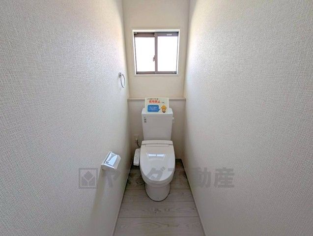 ウォシュレット付きトイレです。一年を通して快適に使える温水洗浄機能付き。寒い季節でも安心して使えます。