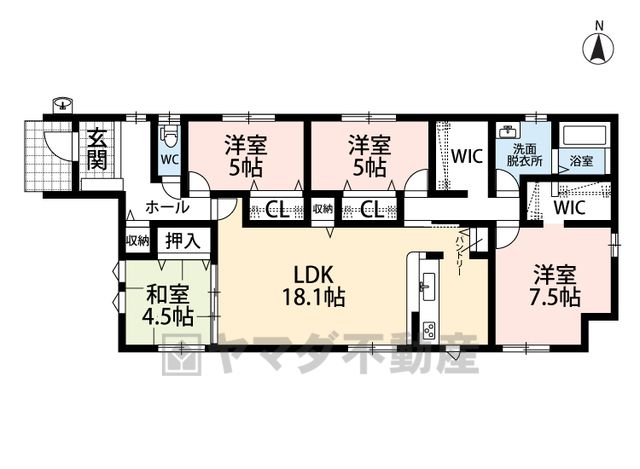 LDK18.1畳(1F)、和4.5畳(1F)、洋7.5畳(1F)、洋5畳(1F) |