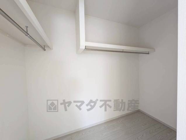 大容量のウォークインクローゼット。季節ごとのお洋服全てを収納できるので、衣替えも楽になります。お洋服好きの方にもおすすめです。