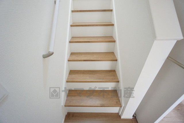 玄関入ってすぐに2階へ上がる階段がございます^^階段横にはあると便利はファミリークローク完備。