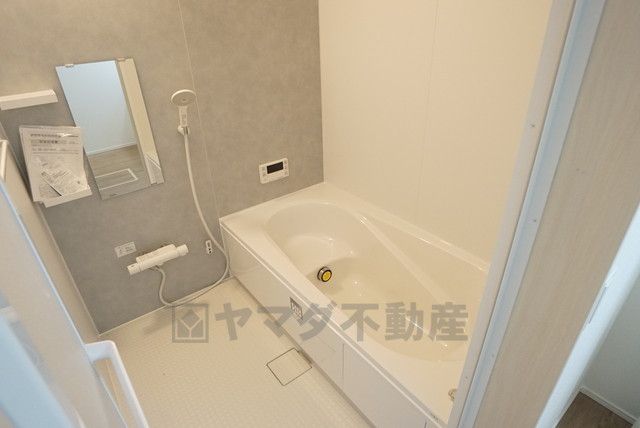1日の疲れを癒すくつろぎのバスルーム。足を伸ばしてもゆったりと入れるサイズです。お子様と一緒にお風呂に入っても狭くないですね^^