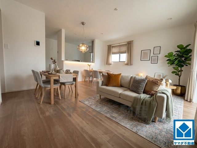 家族が集まる開放的なリビング。思い思いの時間を過ごしたり食事をしたり、素敵な団らんの場になりますね。 (家具はCGによるものです。現況を優先します。)