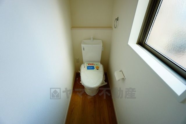 同仕様写真。温水洗浄機付トイレです。節水機能もあるので、安心して使えますね。もちろん、1階2階の2ヶ所にトイレがあるので、忙しい朝にもゆとりができますね。