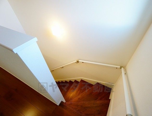 同仕様写真。小さなお子様やご高齢の方でも安心できる、手すり付き階段。段差も低めで設定されており、安全性にも優れています。