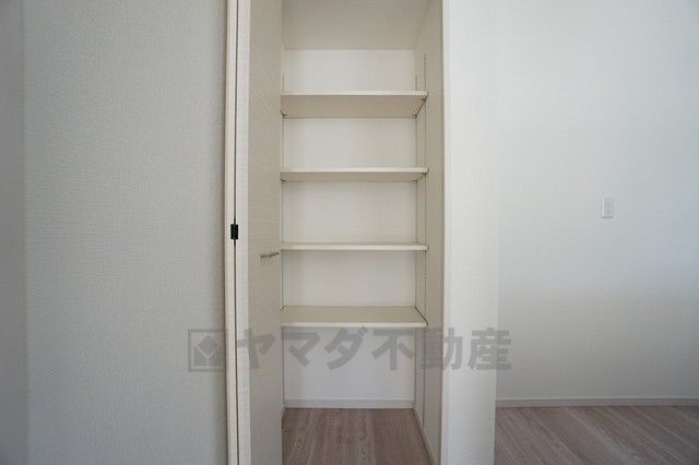 同仕様写真。まとめ買いしてもこの収納量なら心配要らずのパントリー。調理家電や食品のストックをすっきりまとめられ、キッチン周りを広々使えます。