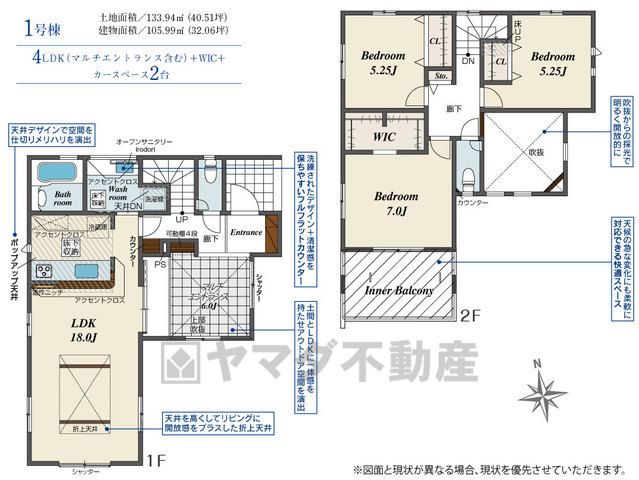 LDK18畳(1F)、その他6畳(1F)、洋5.2畳(2F)、洋7畳(2F) |