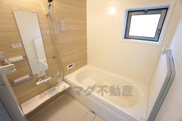 同仕様写真。広々1坪タイプの浴槽ユニットでゆったりくつろげるバスルーム。窓、浴室乾燥機付きで換気・雨の日の洗濯もばっちり^^
