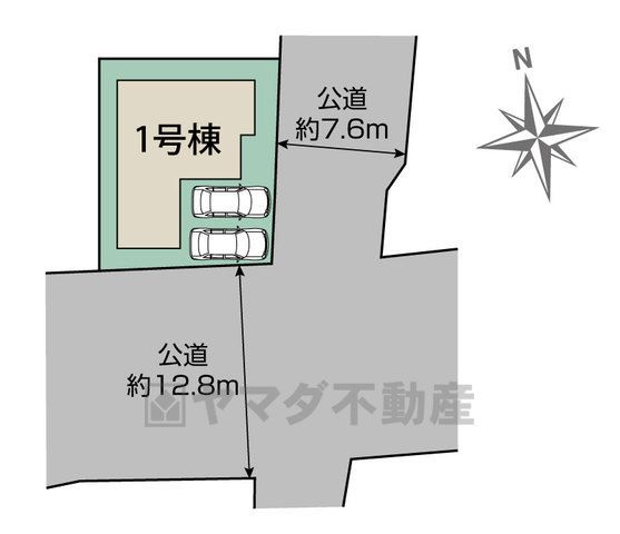 公道 東 幅員7.6m 公道 南 幅員12.8m |