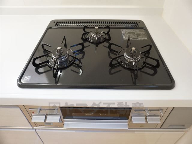 同仕様写真。複数の調理を一度に行うことができる3口コンロ。効率よくお料理が出来ます。毎日のお料理も楽しくなりますね^^