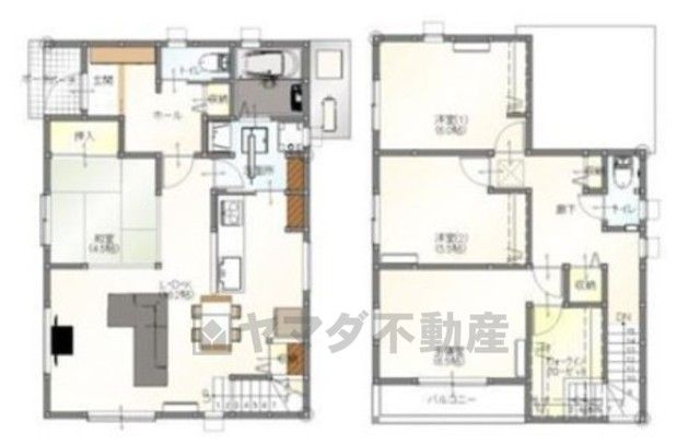 LDK18.2畳(1F)、和4.5畳(1F)、洋5.5畳(2F)、洋6畳(2F)、洋6.5畳(2F) |