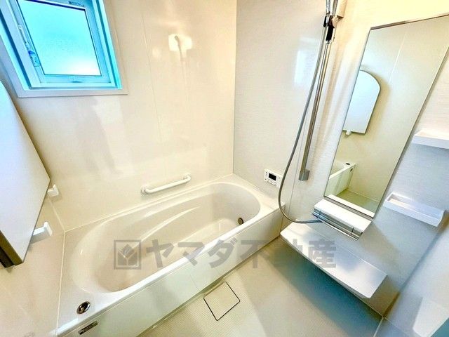 1日の疲れを癒すくつろぎのバスルーム。足を伸ばしてもゆったりと入れるサイズです。お子様と一緒にお風呂に入っても狭くないですね^^