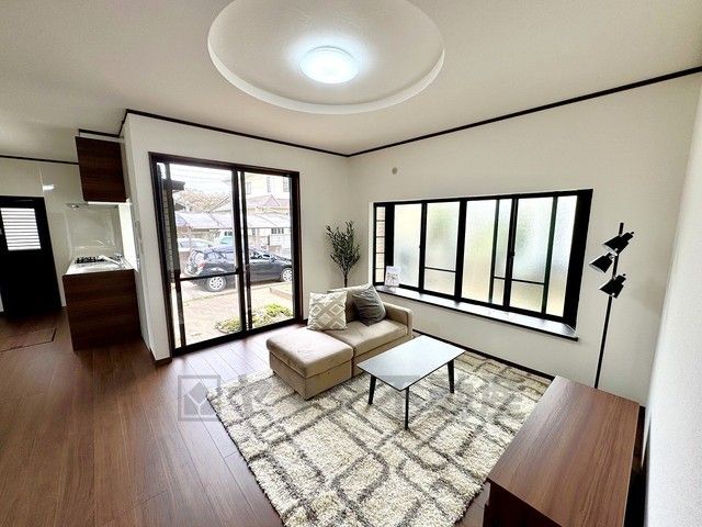大きな掃き出し窓のあるリビングは、陽光あふれる明るい空間です。ゆったりと寛げる憩いの場となりそうです。